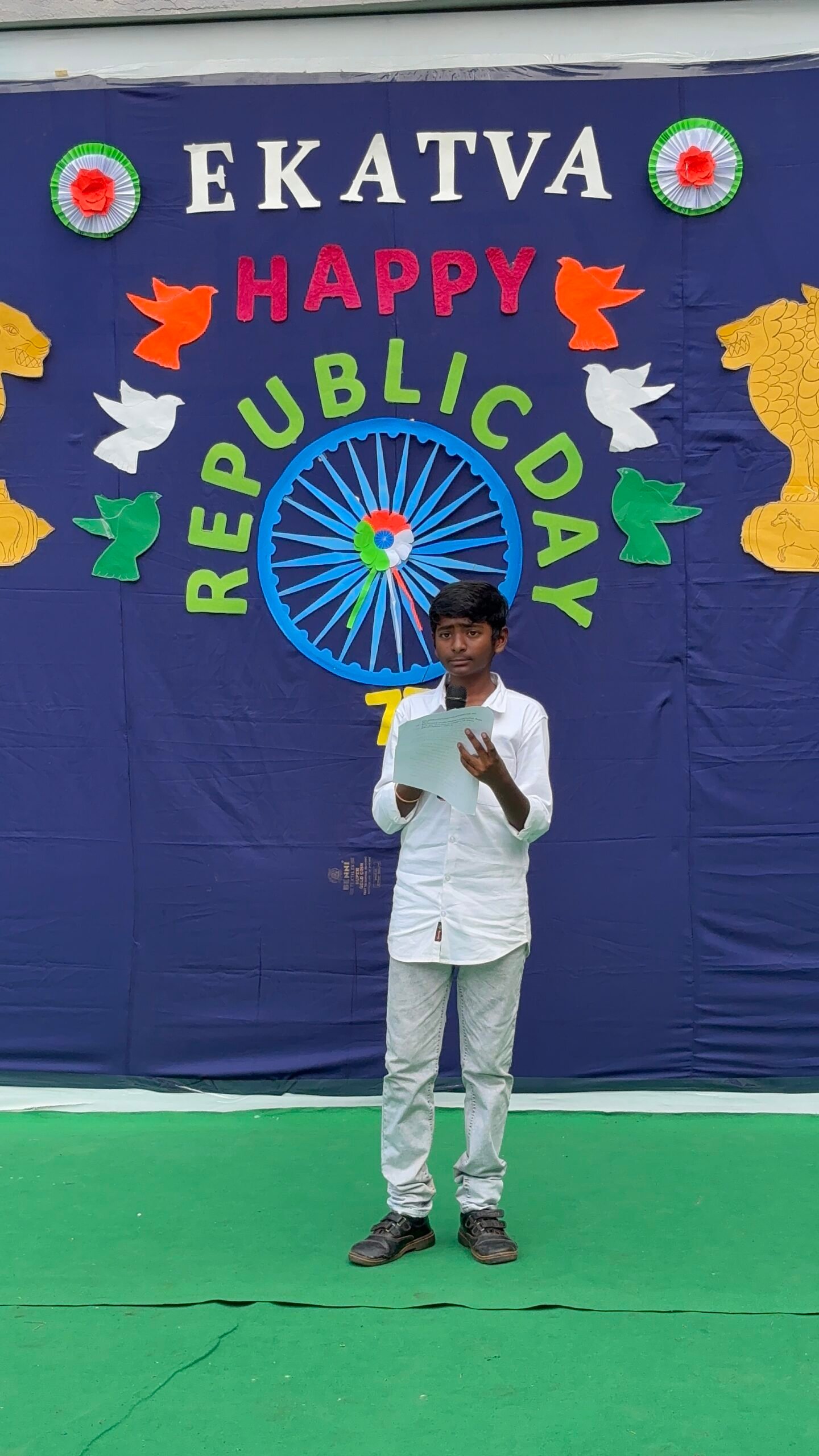 The 77th Republic Day was celebrated with great enthusiasm by our students. Grade 7 students presented a mock assembly of Andhra Pradesh, followed by an engaging skit highlighting the basic Fundamental Rights. Our kindergarten students delighted everyone by confidently reciting the states of India along with their capitals. The celebration concluded on a proud and inspiring note with the National Anthem presented in sign language.